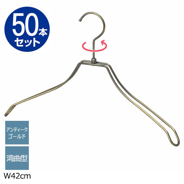 ストア・エキスプレス 【50本】湾曲スチール製ハンガー アンティークゴールド 幅42cm 7270-6015 1セット(50本)(直送品)