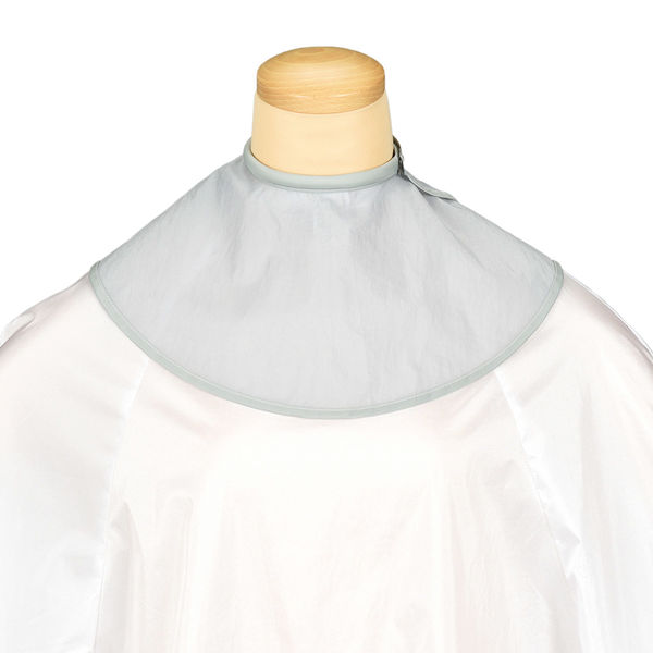 | 商品の特徴 | コールド液による汚れ防止の補助として、カット時の髪の侵入を防ぐケープとして使い方はさまざま。襟の中の柔らかなウレタンがクッションになり、首回りに負担をかけません。防水加工、抗菌・防臭加工、シワ加工。 | ||