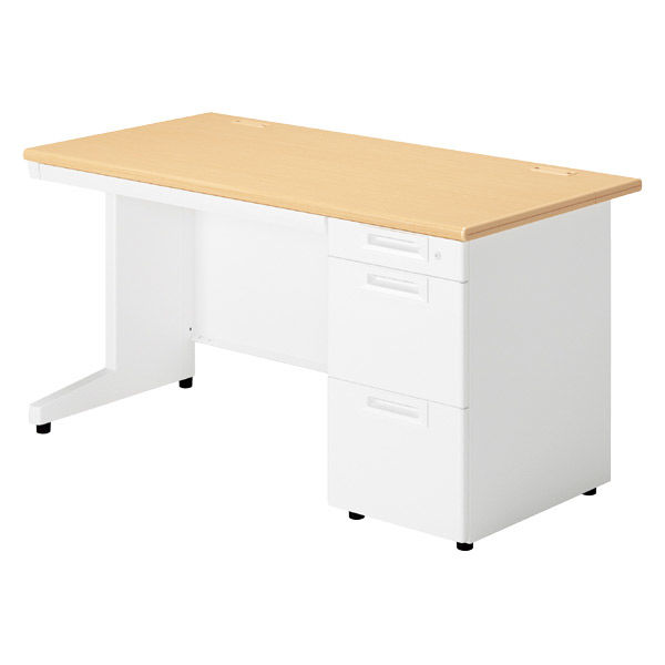 プラス スチールOAデスク フラットライン+(プラス) 片袖机 メープル天板/ホワイト脚 幅1400×奥行700×高さ720mm 1台(2梱包)