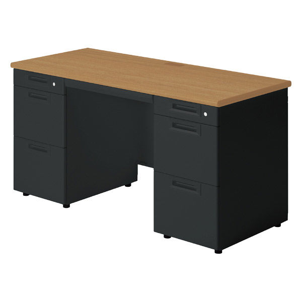 【組立設置込】プラス SA(エスエー) 両袖机 幅1400×奥行600×高さ720mm ミディアムウッド×ブラック 1台(直送品)