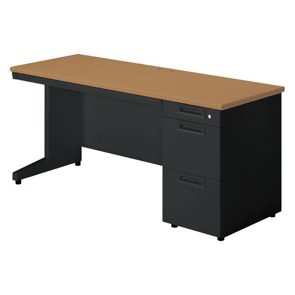 【組立設置込】プラス SA(エスエー) 片袖机 幅1600×奥行700×高さ720mm ミディアムウッド×ブラック 1台(直送品)