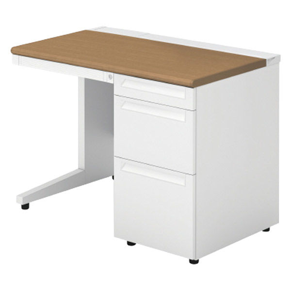 【組立設置込】プラス US-1 片袖机 幅1000×奥行600×高さ720mm ミディアムウッド US-106D-3 T2/W4 1台(直送品)