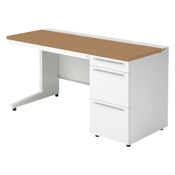 【組立設置込】プラス US-1 片袖机 幅1400×奥行600×高さ720mm ミディアムウッド US-146A-3 T2/W4 1台(直送品)