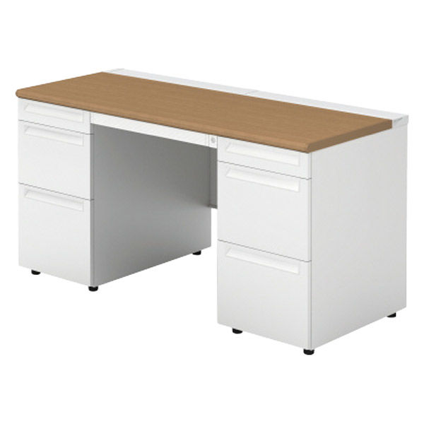 【組立設置込】プラス US-1 両袖机 幅1400×奥行600×高さ720mm ミディアムウッド US-146D-33 T2/W4 1台(直送品)