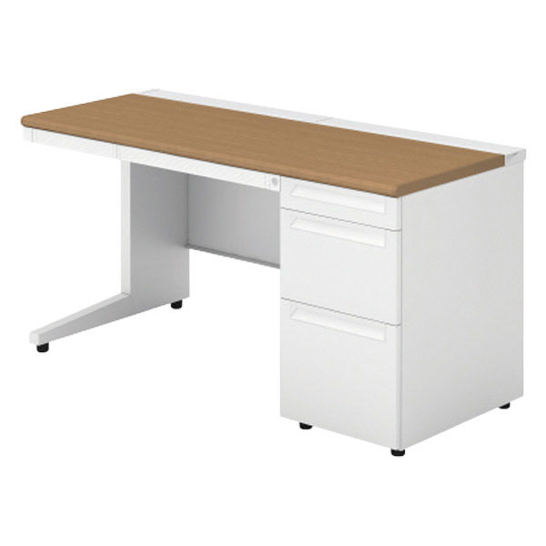 【組立設置込】プラス US-1 片袖机 幅1400×奥行600×高さ720mm ミディアムウッド US-146D-3 T2/W4 1台(直送品)