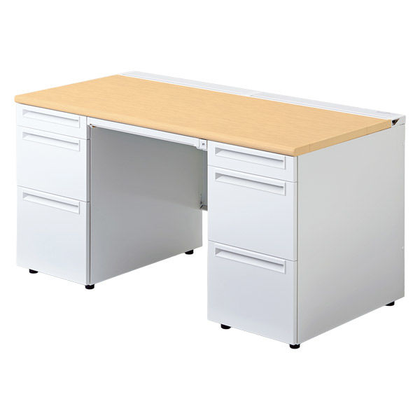 【組立設置込】プラス US-1 両袖机 幅1400×奥行700×高さ720mm ホワイトメープル US-147D-33 WM/W4 1台(直送品)