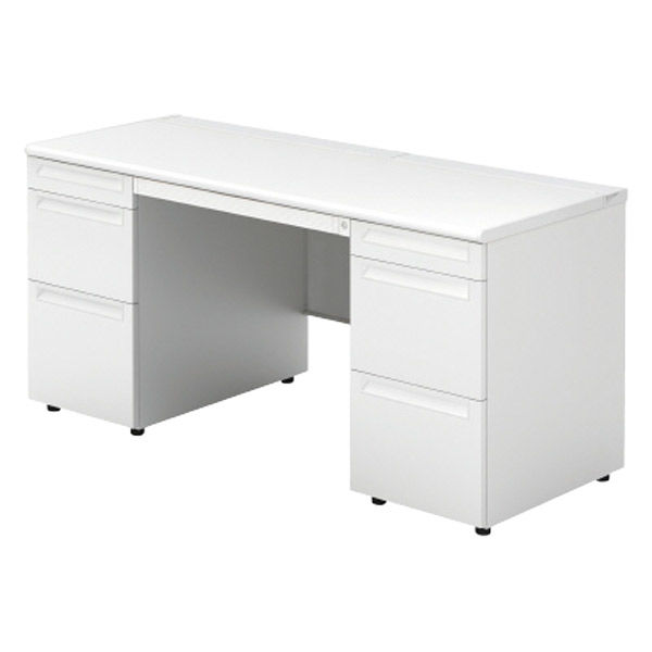 【組立設置込】プラス US-1 両袖机 幅1500×奥行600×高さ720mm ホワイト US-156D-33 WS/W4 1台(直送品)