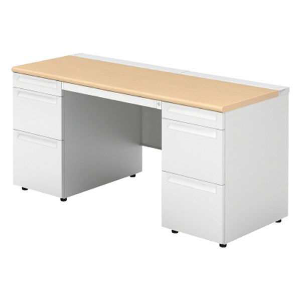 【組立設置込】プラス US-1 両袖机 幅1500×奥行600×高さ720mm ホワイトメープル US-156D-33 WM/W4 1台(直送品)