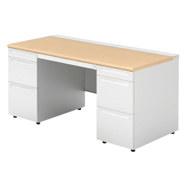 【組立設置込】プラス US-1 両袖机 幅1500×奥行700×高さ720mm ホワイトメープル US-157DL-33 WM/W4 1台(直送品)