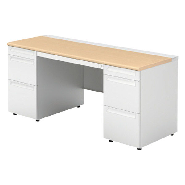 【組立設置込】プラス US-1 両袖机 幅1600×奥行600×高さ720mm ホワイトメープル US-166D-33 WM/W4 1台(直送品)