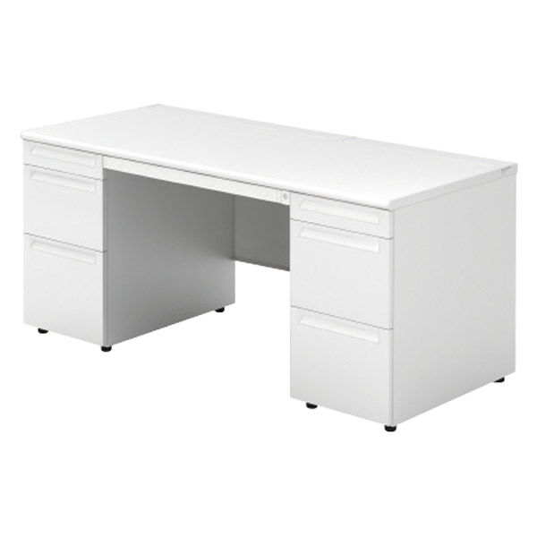 【組立設置込】プラス US-1 両袖机 幅1600×奥行700×高さ720mm ホワイト US-167D-33 WS/W4 1台(直送品)