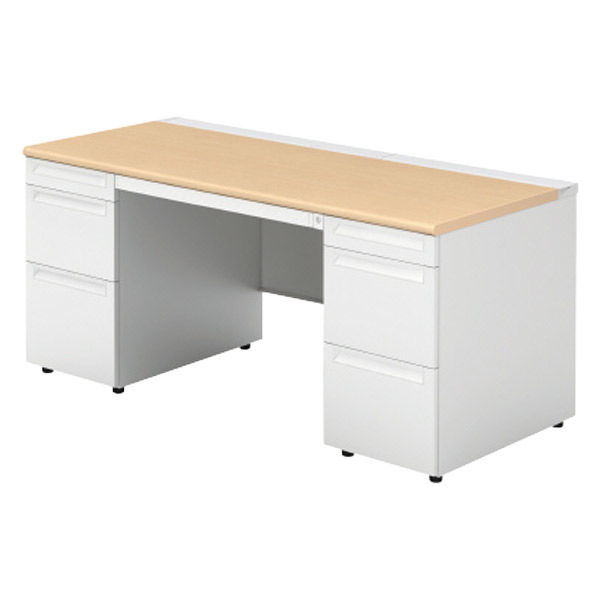 【組立設置込】プラス US-1 両袖机 幅1600×奥行700×高さ720mm ホワイトメープル US-167DL-33 WM/W4 1台(直送品)