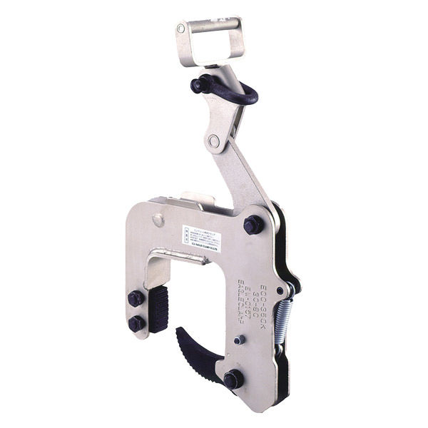 - ●壁際の隙間の少ない、コンクリート製品の引起し、運搬用。●人力・機械兼用型。●つり荷重による自動締付機構。●つり荷重の2倍以上の力で締め付ける。●グリップ力はつり荷重に比例。●カムストロークが大きいのでつり荷のサイズが広範囲につれる。●高周波数焼入れ済みの特殊合金鋼製カム使用。●クラックに強い高抗張力鋼の溶接構造。●引起し作業可。●スプリング式ロック装置付。●クロームメッキ仕上げ。●コンクリート二次製品等の吊り上げ運搬・反転・施設。●各種道路用側溝、用排水路、歩道道境界ブロック、L型ブロック、組立水路、棚板、芝台、井側、石材等。