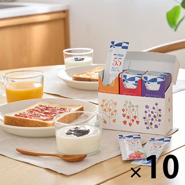 商品の特徴 アヲハタ55ジャム小袋3種の人気フレーバーがアソートになったデザインBOX ●イチゴ/オレンジママレード/ワイルドブルーベリー、その日の気分に合わせて好きなフレーバーを楽しめます●すべて食べきったあとは、中身のジャムのみ購入して箱に詰め替えることで、繰り返し使えます(アスクル・ロハコでも販売中)●食卓に出しておいてもなじみ、ギフトにも喜ばれるデザイン。ホテルやレストランなどの朝食会場、施設にもそのまま置いてご使用頂けます●1回使いきりで衛生的。スプーンを使わずにパンに塗ることもできます。(デザインボックス)アスクル限定・ロハコ限定※アスクルグループおよびパートナー企業の自社サイトなどにおける限定販売商品です。