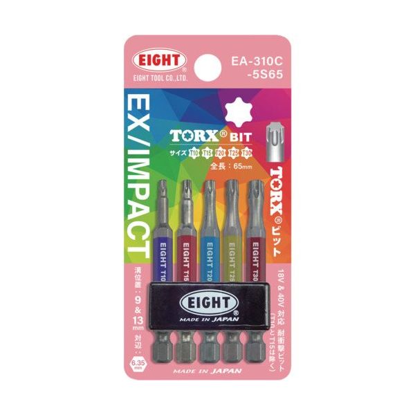 | 商品の特徴 | ●エイト既存品ビットの約3倍の耐久力を誇ります。●削り込み加工が工具からの衝撃を受け止め、ビット本体とネジへのダメージを防ぎます。●鮮やかなカラー仕上げで、サイズを選びやすく作業効率を高めます。●18~40V対応(T10とT15は除く) | ||