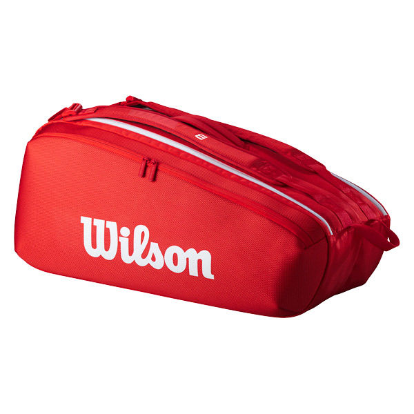 - Wilsonバッグのシグネチャーシリーズ・SUPER TOURがアップデート。世界を転戦する選手たちの要望に応える為、軽量且つ耐久性の高いポリエステルを採用。また、人体工学に基づき設計された新設計のストラップは身体への負担を軽減。ラケットや衣類等の収納にぴったりなメインの収納部は2室に分かれており、ラケットを最大9本収納可能。メインの収納部の内1室にはサーモガード加工が施され、外部の気温上昇による影響を防ぐ。両面のフロント部に小物を収納可能なジッパー付ポケット。前面部には貴重品等の収納に最適なジッパー付ポケット。底面部にはベンチレーション仕様のジッパー付ポケットがあり、シューズの収納に最適。
