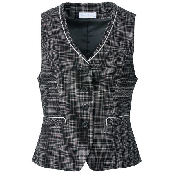 | 商品の特徴 | 繊細なツイードチェックベスト。襟ぐりとポケット口の配色がアクセントです。 | ||