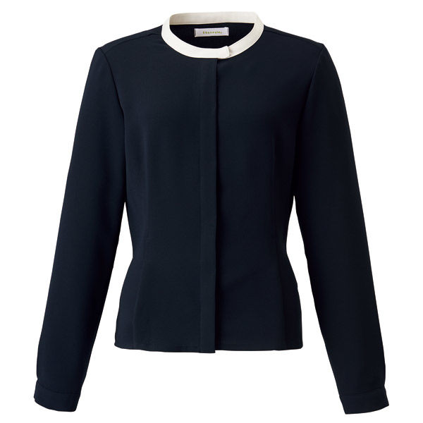 神馬本店 バイカラージョーゼットブラウス ネイビー 17号 WN60B-1-17号 1着(直送品)
