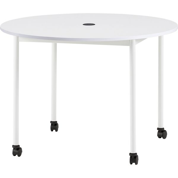 | 商品の特徴 | 2-4人での話合いなどに最適な、直径1mの円型のテーブルです。配線コードホルダー付なので、PCへの給電などの際、配線が邪魔になりません。脚にはキャスターが付いているので、移動させるのも簡単。また、キャスターの上部のリングを回転させると、最大10mmのレベル補正ができます。 | ||