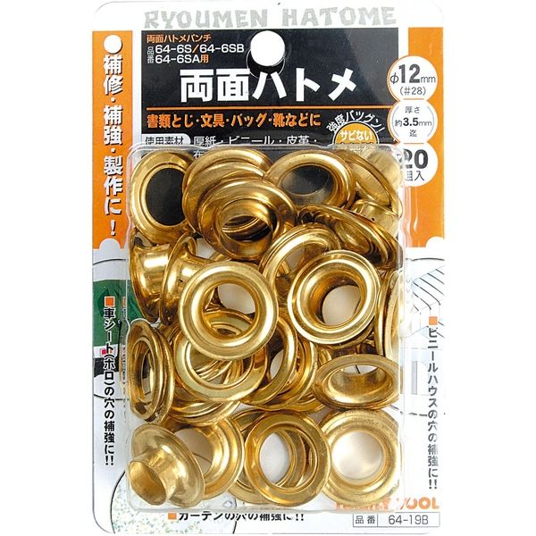 | 商品の特徴 | 真鍮製12mm両面ハトメ玉の20組セットです。 | ||