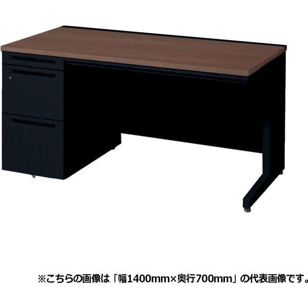 Netforce オフィスデスク 片袖机 幅1400×奥行700 スチール製 ブラック×ダークブラウン 1台(直送品)