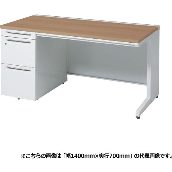 Netforce ナッツ オフィスデスク 片袖机 3段袖 鍵付 幅1200×奥行700mm 事務机 スチール製 天板ホワイト×本体ホワイト(直送品)