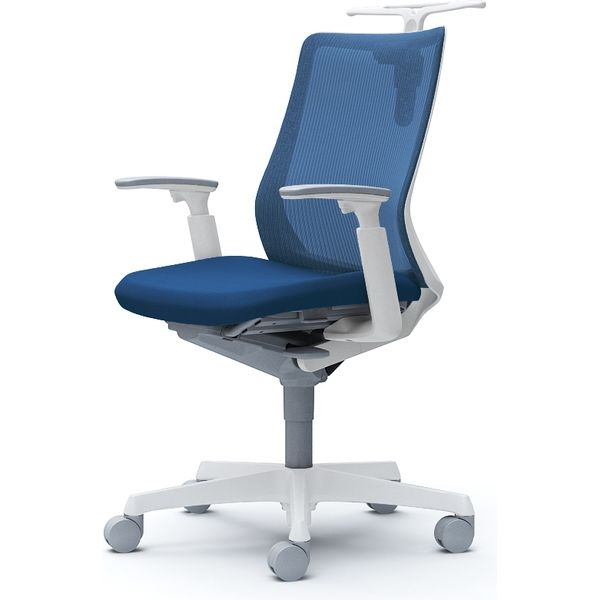CB82WW FKB3|オカムラ フルーエント ローバック 可動肘 ハンガー付 ナイロンキャスター 白脚 ホワイト/ミディアムブルー 1台(直送品)