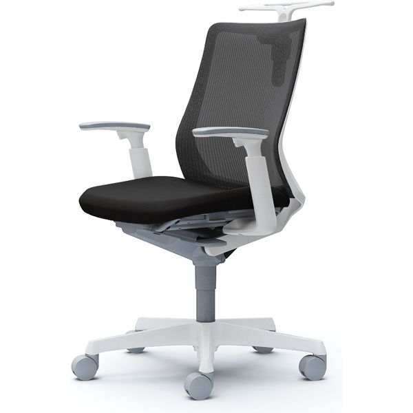CB82WW FKA1|オカムラ フルーエント ローバック 可動肘 ハンガー付 ナイロンキャスター 白脚 ホワイト/ブラック 1台(直送品)