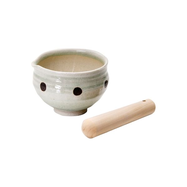 | 寸法 | すり鉢)径10x高7cm すり棒)13cm、個 | 商品タイプ | 水玉ヒワ釉片口すり鉢 |