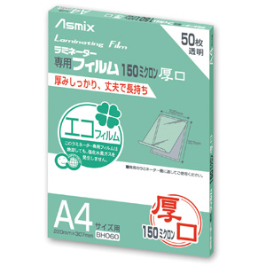 アスカ ラミネーター専用フィルム A4 150ミクロン 50枚入り BH060 1箱