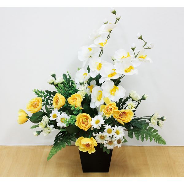 | その他商品仕様 | ●その他:●生花のような精巧なつくり、気品ある美しさがお部屋を華やかに!光触媒加工で空気もキレイにします。●消臭!抗菌!防汚!ホルムアルデヒド分解!●水替え・お手入れ不要●プレゼントにおすすめ!●サイズ:(約)幅35×奥行26×高さ42cm●重さ:(約)600g●素材:ポリエステル、ポリエチレン、鋼、ウッド | ||