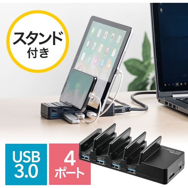 サンワダイレクト スマホ充電スタンド(4ポート・USBハブ付・USB3.0・USB充電・セルフパワー・バスパワー) 400-HUB059 1個(直送品)