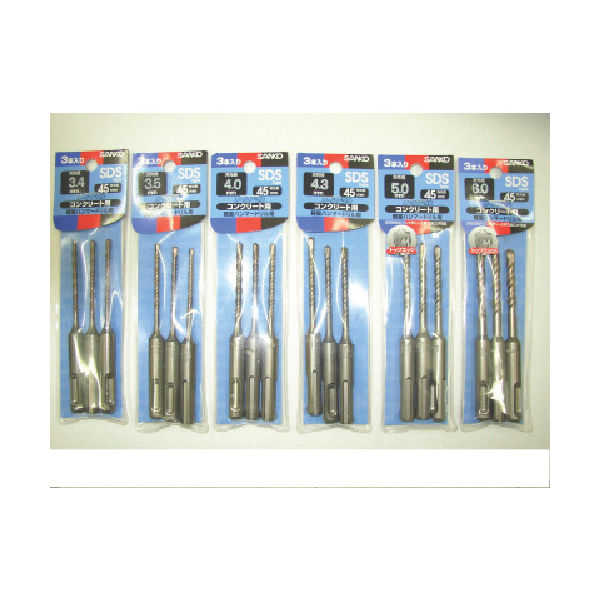 | 商品の特徴 | ●軽量ハンマードリルにワンタッチで着脱ができます。●穴あけパワーを刃先に効率よく伝達します。●3本入りのお得なセットです。●ビニール入 | ||