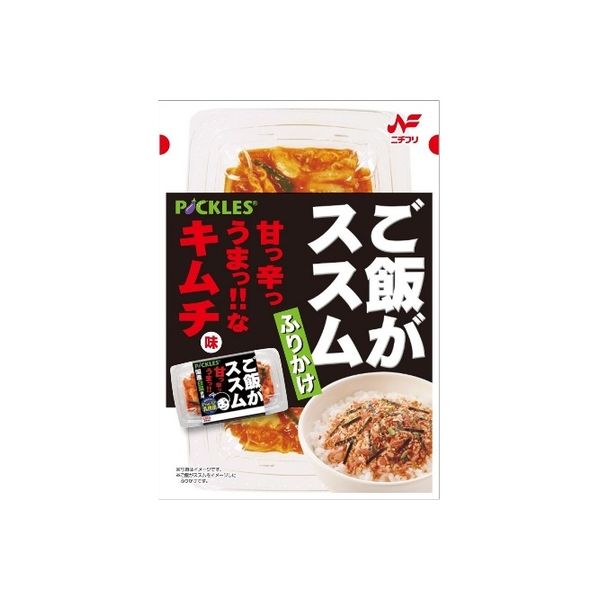 | 商品の特徴 | 「甘っ辛っうまっ!!」というコンセプトの、(株)ピックルスコーポレーションの「ご飯がススムキムチ」をイメージしたふりかけです。こってりとした味わいを、ふりかけで再現しました。味付かつお削り節や焼き海苔、キムチ味のチップ等を使用しており、ふりかけならではのサクサク食感と味を堪能できます。 | ||