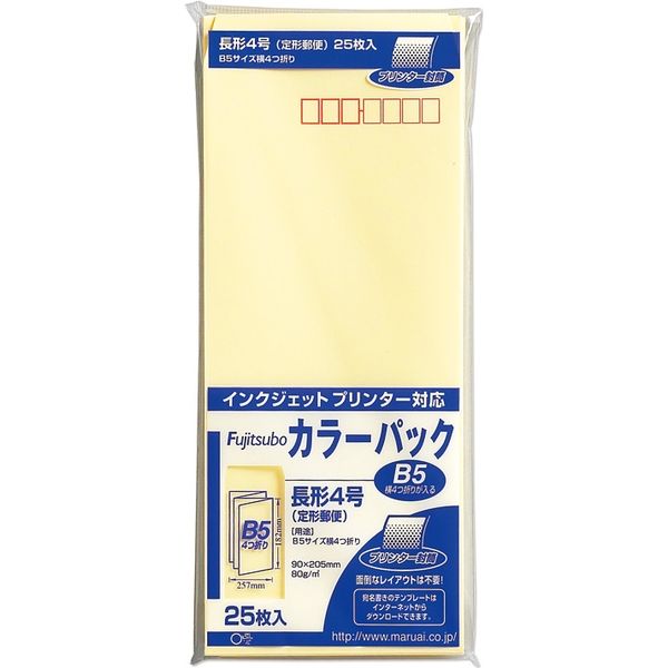 | 商品の特徴 | B5サイズ4つ折りに最適なカラー封筒(クリーム)です。ビジネスにもパーソナルにもご利用いただける安心のスタンダードタイプ。郵便枠印刷あり。サイズ:90×205mm(長形4号)。定形郵便。坪量:80g/平方m。裏面センター貼り。25枚入。 | ||
