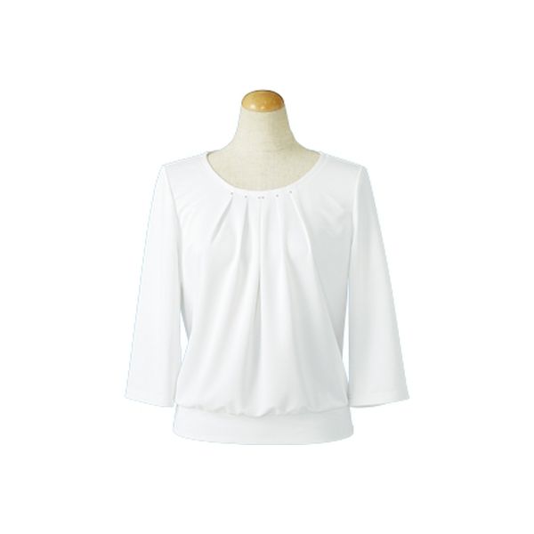 | 商品の特徴 | 胸元のタックがふんわり華やぎ、スワロフスキー(R)クリスタイルをアクセントにしたカットソー。再生ポリエステルを使用したエコ商品です。 | ||