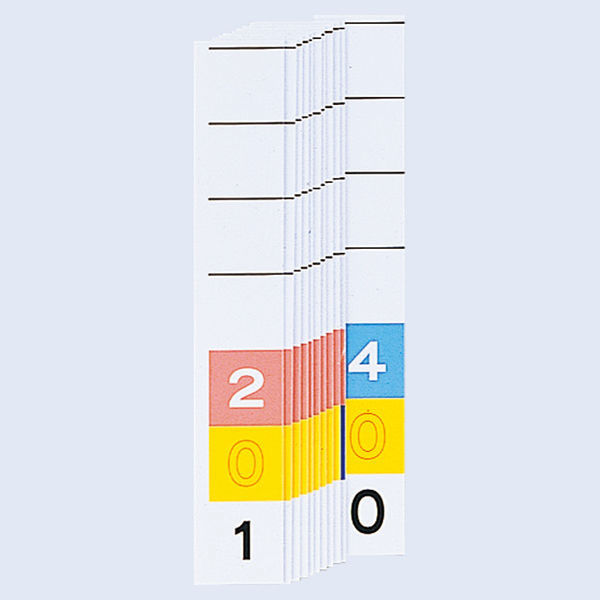 | 商品の特徴 | 下3桁が両面印刷済みなので、ラベルを貼る手間を省力化できます。縦108×横18mmの見出し紙が使用できるカルテ管理用品にお使いください。 | ||