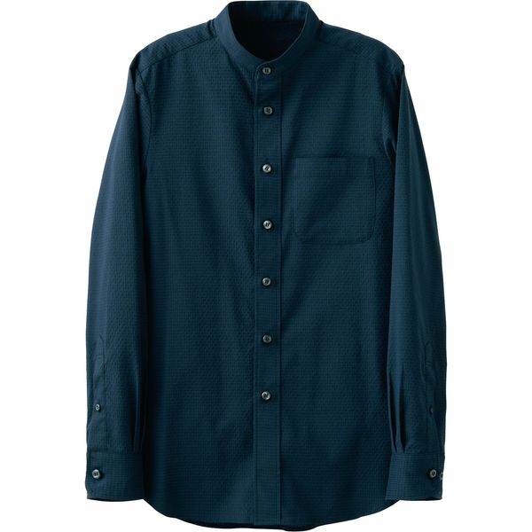 ストレッチ素材を使用した男女兼用長袖スタンドカラーシャツ