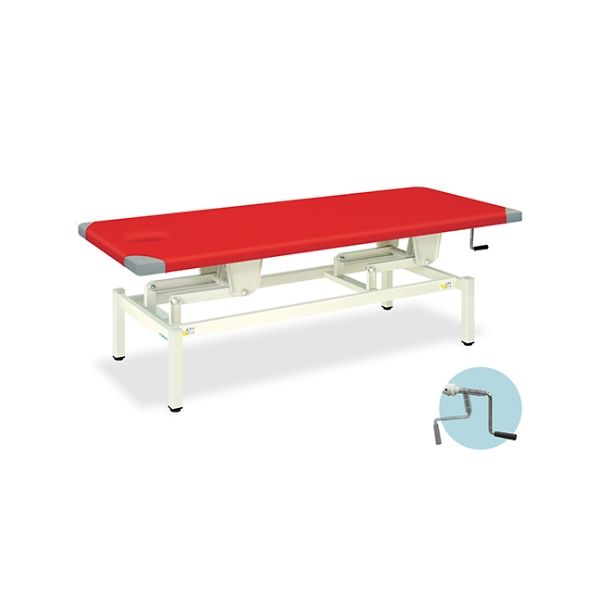 | 商品の特徴 | ●開業を支援する実用性の高い旋回昇降式の廉価版手動ハイローベッド。●回転操作で昇降できる簡単設計。施術の邪魔にならない収納ハンドル。 | ||
