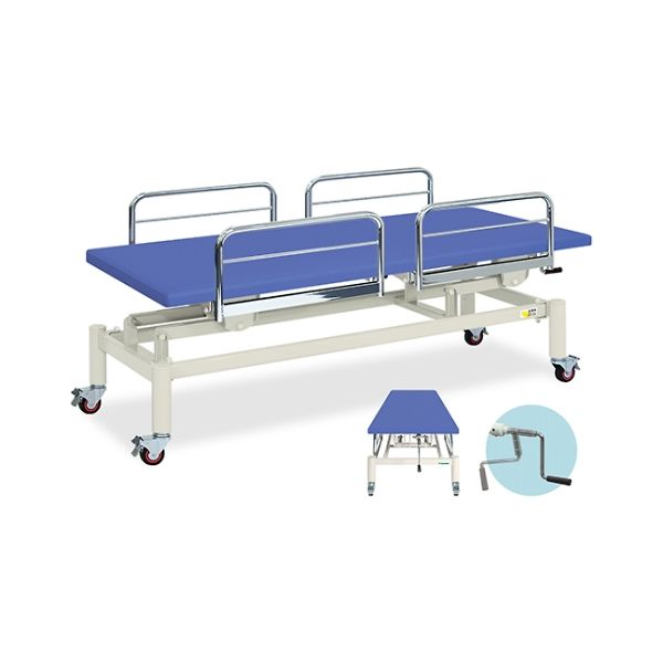 | 商品の特徴 | ●回転機能付きストッパー式スイングガード(クロムメッキ)4本付き。●車輪と旋回が同時ロック可能な直径7.5cmダブルロック式キャスター。●手動旋回昇降式で高さを調節できるクランク式ハンドル操作の施術台。 | ||