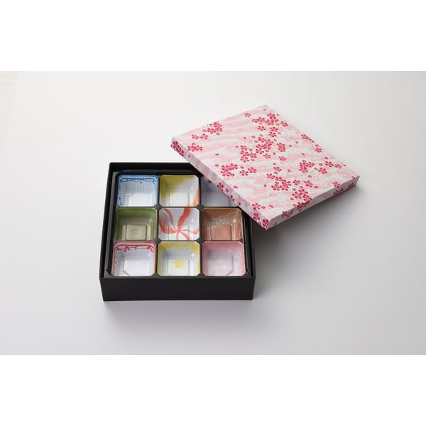 | 寸法 | 内寸:幅205mm×奥行き205mm×高さ43mm、外寸:幅215mm×奥行き215mm×高さ58mm | 仕様 | 貼り箱・化粧箱 / 足付式 |