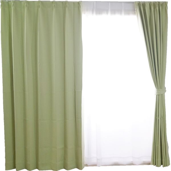 スミノエ デザインライフ プライム2 カーテン 幅1700×長さ2000mm ライトグリーン 1セット(2枚入)(直送品)