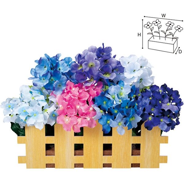 | 備考 | 【返品について】お客様のご都合による返品はお受けできません。●片面 壁際への連続展開もGood! ●梅雨の時期を清々しく彩るアジサイアレンジです。 ●置くだけ簡単! | ||