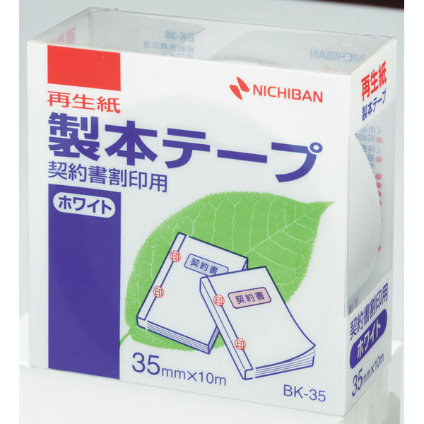 ニチバン 再生紙製本テープ(契印用) ロールタイプ 幅35mm×10m 白色度80% BK-35(わけあり品)