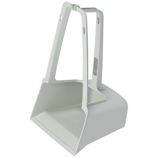 再生素材使用した樹脂製の大型チリトリです。ホーキをセットできるホルダー付です。空き缶などを分別できるようお買い物袋をセットできるフックが付いています。
