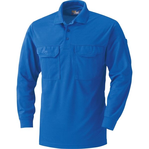 | 商品の特徴 | 汗のベタつきを防ぐ吸汗、速乾加工の両胸に雨蓋つきのポケツトのある機能的長袖ポロシャツ | ||