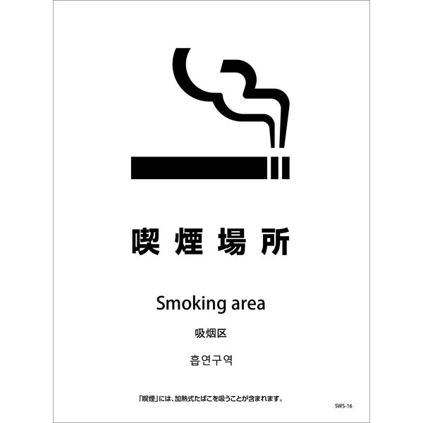 グリーンクロス 喫煙設備ステッカー 壁面床面用 4ヶ国語タイプ SWSー16 喫煙場所 1146551616 1枚(直送品)