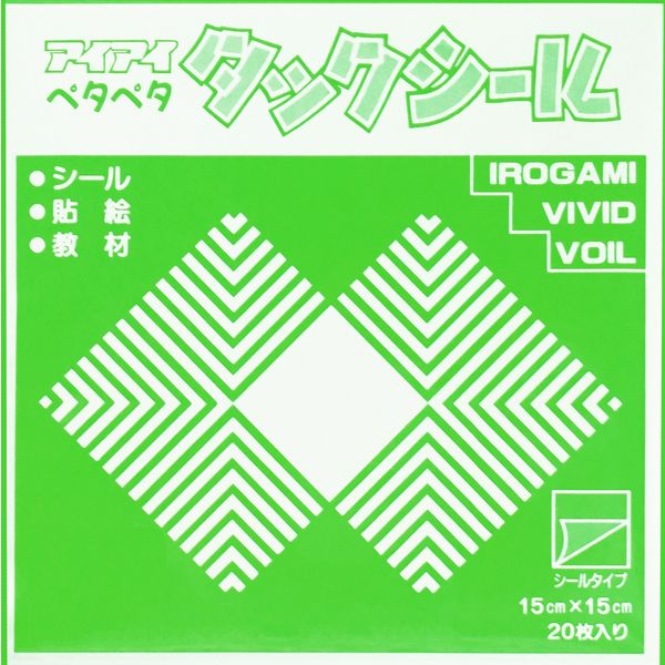 | 商品の特徴 | 裏面がシールになったいろがみです。切ってはがして貼るだけで簡単にオリジナルの作品が作れます。幼稚園や学校での工作や各種デコレーションなどにおすすめです。アイアイカラー使用。エヒメ紙工のアイアイカラーは、学校教材にも使用される、安全・高品質なおりがみ。明度・彩度・色相を重視した深みのある色合いが特徴です。水性顔料を使用しています。日本のおりがみ品質の基準を満たしており、お子様でも安心してご使用いただけます。【サイズ】15×15cm【枚数】20枚【仕様】裏面シール【色】きみどり | ||