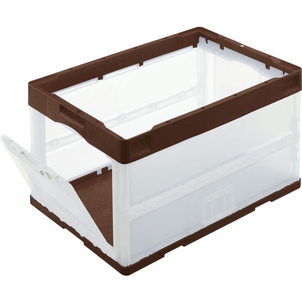 アスクル「現場のチカラ」 扉付き折りたたみコンテナ 短辺扉付き フタ無 50L ブラウン オリジナル(わけあり品)