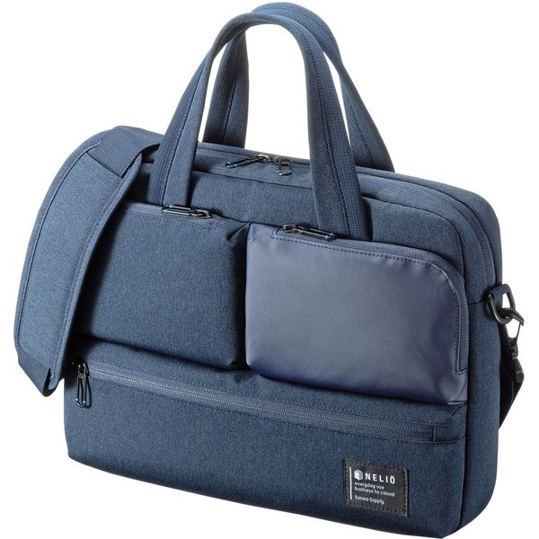 3つのフロントポケットが特長の軽くて便利なカジュアルPCバッグ。13.3インチワイド対応・ネイビー。3つのフロントポケットで小物やアダプタを分けて収納できます。